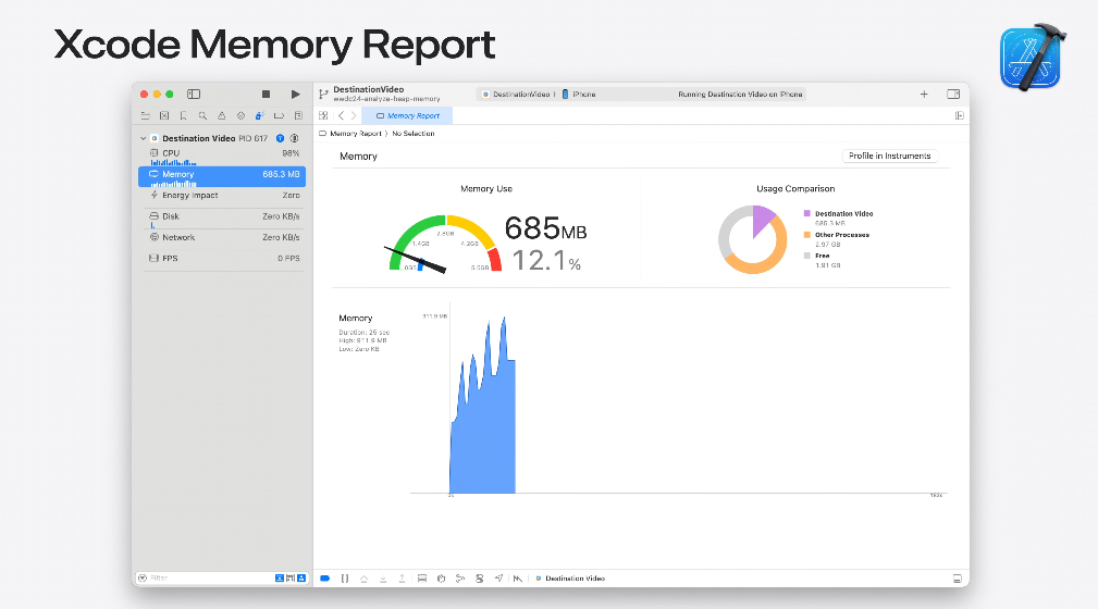 Xcode Memory Report 는 Application footprint 를 알려준다