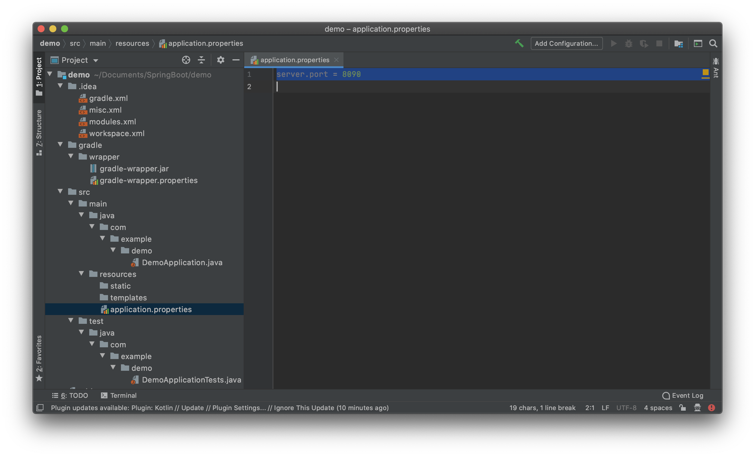 7. Spring Boot 프로젝트를 8090 포트에서 작동하도록 포트를 명시한다.