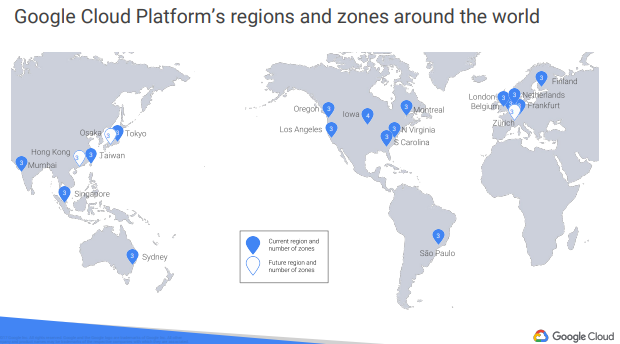 - 강의가 녹화된 때 15개의 리전이 가용중이다. - Multi-Region : 구글의 몇몇 서비스들을 최소 2개의 개별 지리적 위치게 배포할 수 있다.