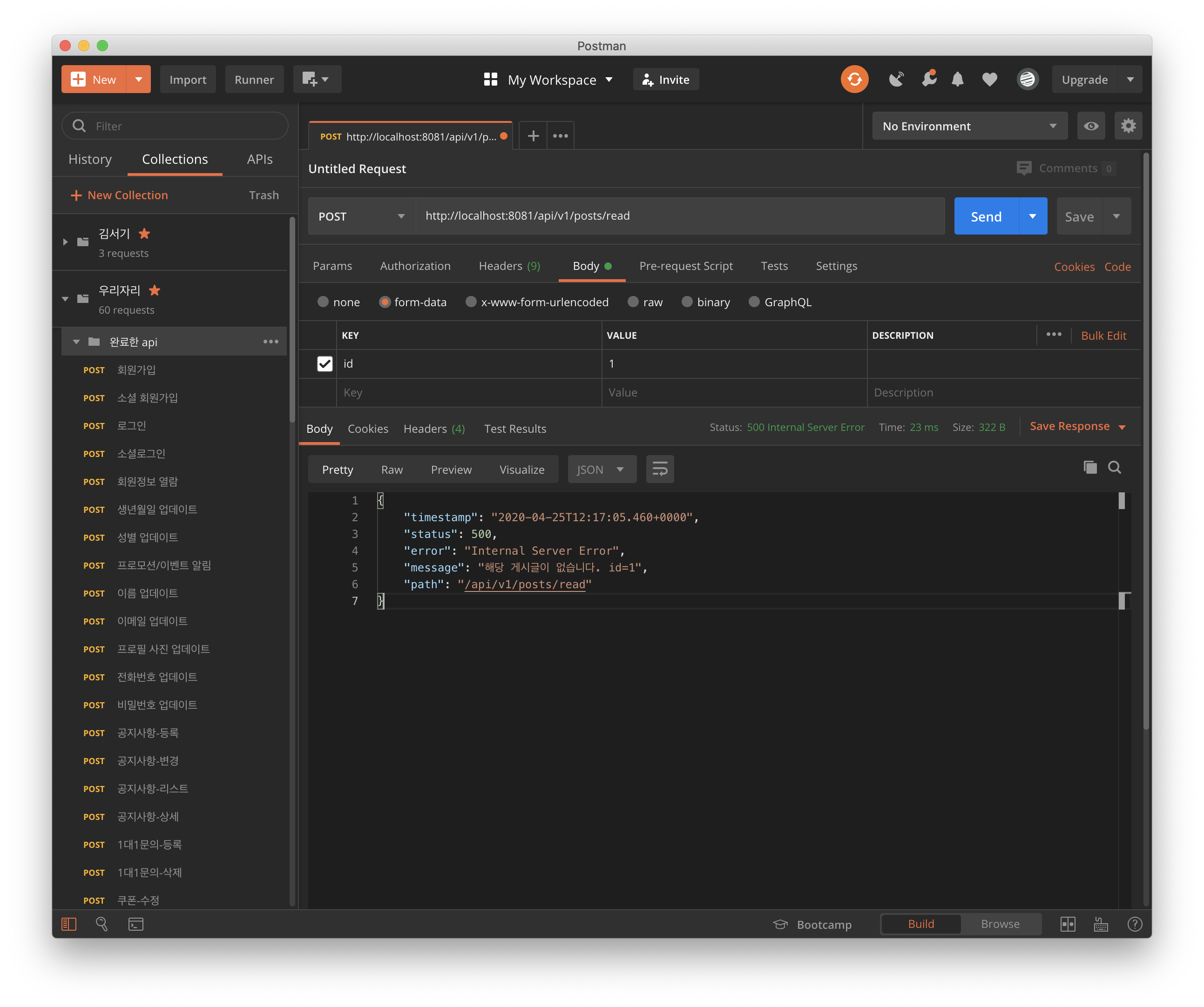 게시글이 없다. 이말은 적어도 api 코드는 작동한다는 의미인거 아닐까?