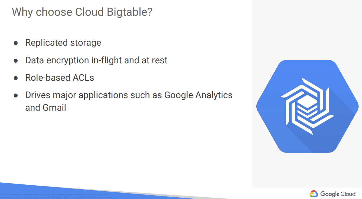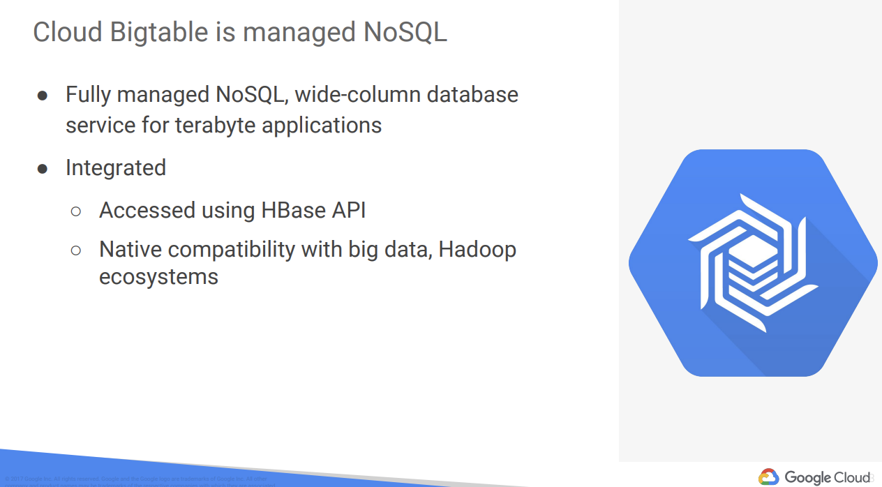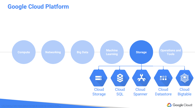 - Cloud bigtable : analytical data, heavy read/write event like AdTech, Financial, IoT data