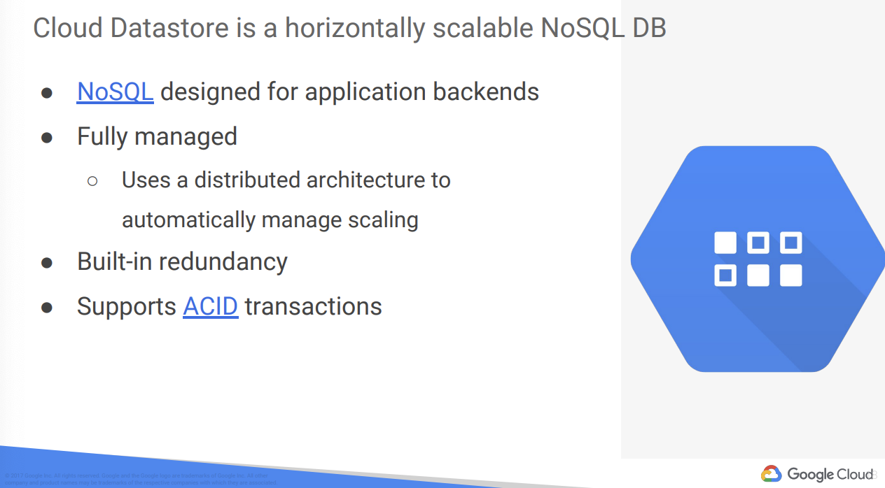 - Cloud datastore : semi-structured application data that is used in app engine application