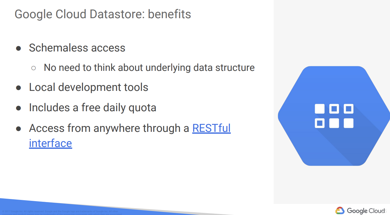 - 데이터 스토어는 매일 무료 quota 가 있으며 sql 쿼리문과 비슷한 코드를 사용한다.