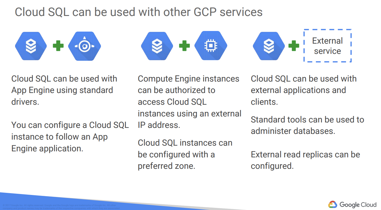 4) 보안의 관점에서 Cloud SQL 인스턴스는 네트워크 방화벽을 포함한다. 데이터는 모든 과정에서 암호화 되어 전달된다.