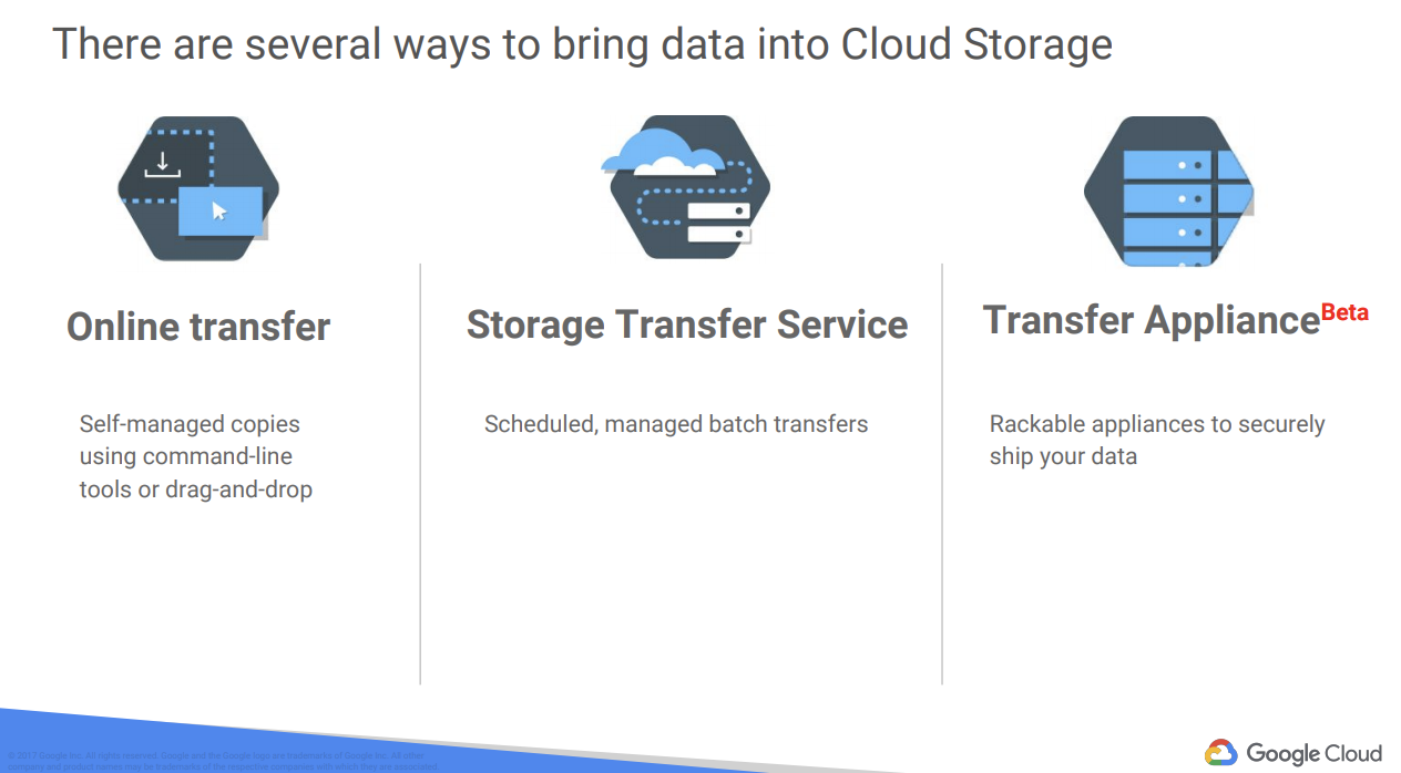 3) 큰 용량(테라, 페타바이트) GCP 가 online storage transfer service + offline transfer appliance를 도와준다. - transfer appliance : rackable, high-capacity storage server (GCP 에서 빌린다,)
